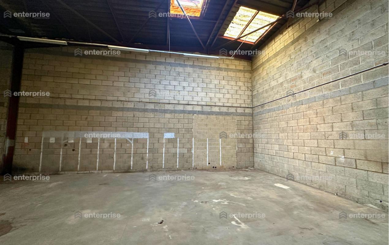 Le bâtiment, d'une surface d'environ 380m2, est équipé d'une fosse ainsi que d'une porte coulissante 3,4x5m.