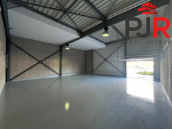 Il est équipé d'une porte sectionnelle motorisée d'environ 2,40 m de largeur par 2,20 m de hauteur. Le sol a récemment été refait et bénéficie d'un revêtement en epoxy, offrant une surface lisse, résistante et facile d'entretien. Les parois intérieures sont en maçonnerie de type aggloméré, laissant un espace brut, sain et parfaitement adapté au stockage. L'éclairage est assuré par des luminaires industriels de type sodium, garantissant une bonne luminosité sur l'ensemble du volume.