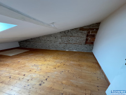 Elle se compose d'une entrée, d'un séjour avec cuisine ouverte, d'un salon lumineux donnant sur l'extérieur, d'une salle d'eau et d'un WC séparé. À l'étage : deux grandes chambres mansardées offrant confort et tranquillité.