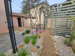 Maison à étage comprenant en rez-de chaussée, une entrée, cuisine aménagée et équipée ouverte sur séjour, toilettes indépendant, et à l'étage, 3 chambres dont 2 équipée de grands dressings et salle d'eau avec toilettes. Extérieur clos, garage et place de parking.