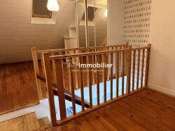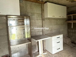RDC : Séjour avec coin cuisine aménagé et équipé, chambre, salle d'eau, buanderie, wc. Étage : 2 chambres, bureau, wc.