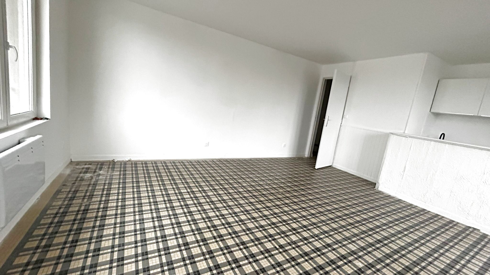 Une pièce de vie ouverte avec coin cuisine aménagée et équipée, une salle de d'eau avec WC Le grand plus : un emplacement voiture, une cour privative et une cour commune.