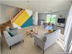 Cette MAISON de plain pied de vie, construite en 2017, offre une surface habitable de 112 m² sur un terrain de 600 m². Elle comprend 4 chambres, 1 salle de bains, 1 salle d'eau, 2 WC indépendants, un séjour de 31 m², une cuisine américaine aménagée et équipée, une terrasse de 15 m² et un jardin de 450 m². L'isolation thermique et phonique est optimale, et l'assainissement est conforme aux normes. Commodités à proximité :