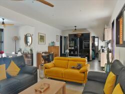 La villa de 138m2 comprend : un séjour spacieux et lumineux, une cuisine américaine entierement équipée, trois chambres climatisée avec placards dont une chambre parentale avec salle d'eau, wc et dressing, une salle d'eau et un WC indépendant.