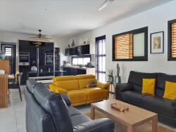 La villa de 138m2 comprend : un séjour spacieux et lumineux, une cuisine américaine entierement équipée, trois chambres climatisée avec placards dont une chambre parentale avec salle d'eau, wc et dressing, une salle d'eau et un WC indépendant.