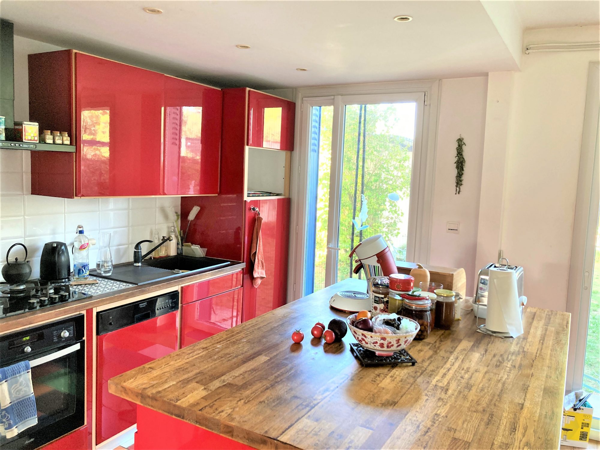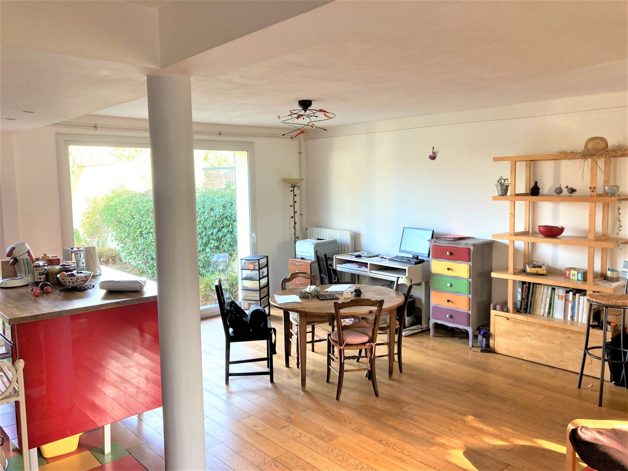 La maison se compose d'une entrée avec placards, d'un séjour lumineux ouvrant sur la terrasse et d'un espace salle à manger convivial. La cuisine, séparée, est meublée et équipée (plaques de cuisson, four et hotte).
