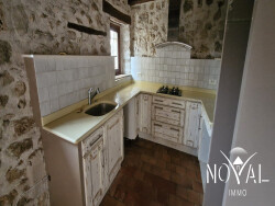Charmante maison de village sur 2 niveaux composée : -Au rez-de-chaussée : entrée sur salon avec cheminée et cuisine américaine aménagée, -Au premier étage : une pièce, salle d'eau, WC indépendant, -Au deuxième étage : deux chambres dont une avec mezzanine.