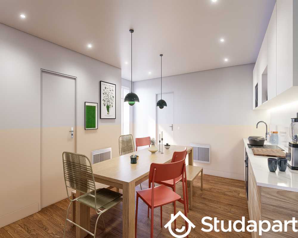 Ce studio meublé de 22 m² au 6? étage sans ascenseur offre une pièce de vie lumineuse avec canapé, coin repas et tomettes au sol. La kitchenette est équipée de plaques, d'un réfrigérateur et d'un micro-ondes, tandis que l'espace nuit en hauteur et les poutres apparentes renforcent le charme du lieu. La salle de bain dispose d'une baignoire sabot et d'un WC.