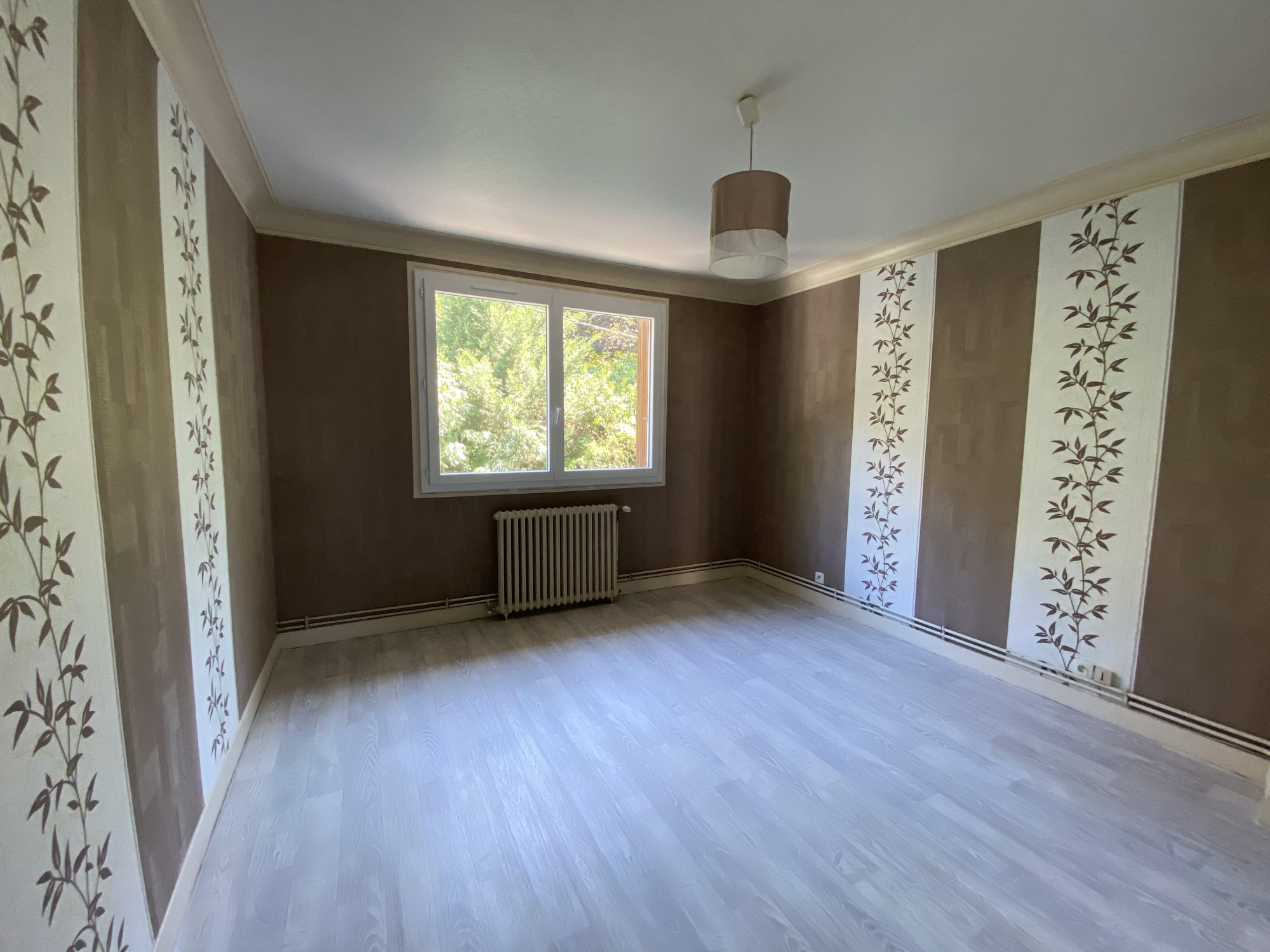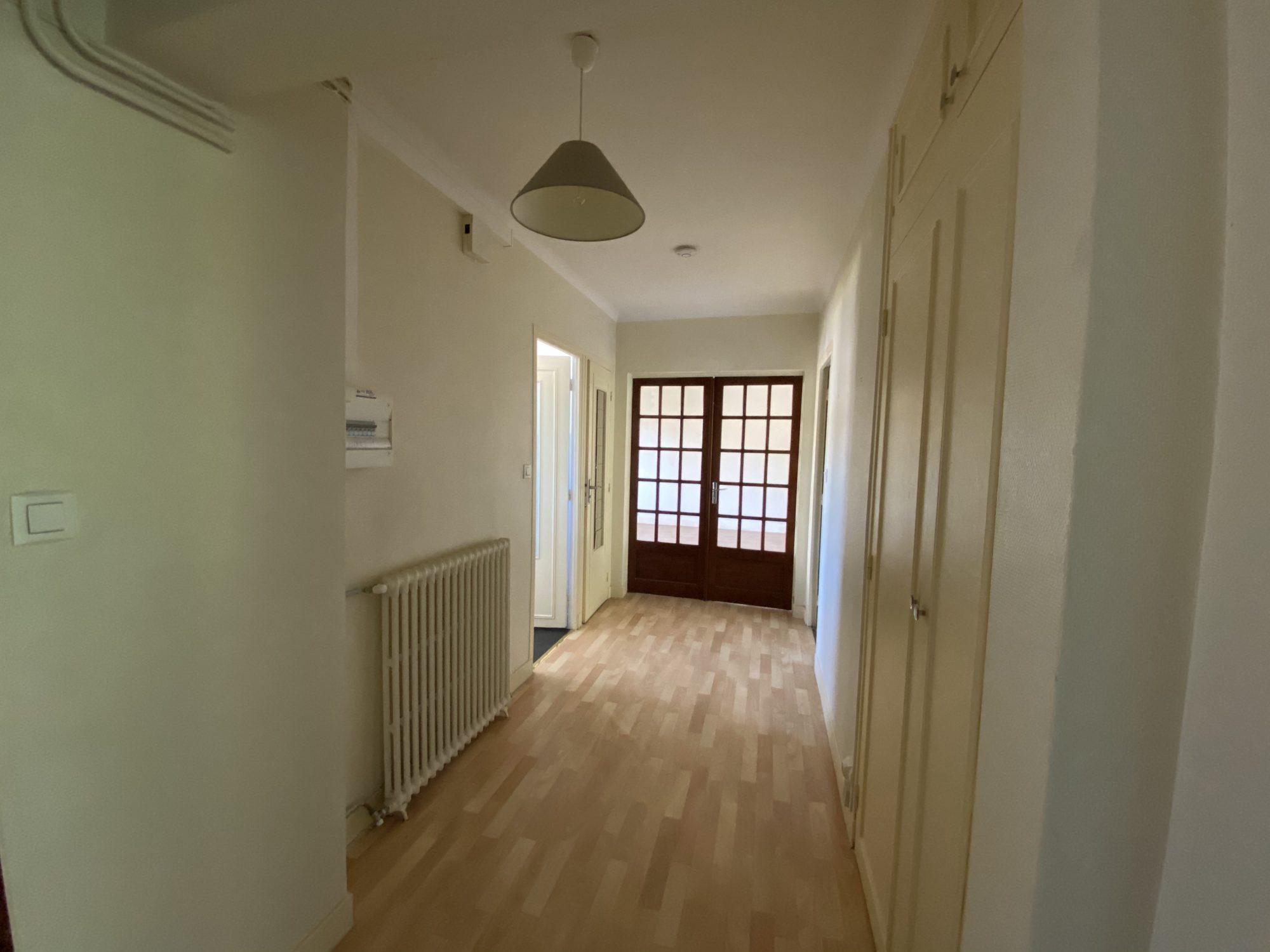 VOUTEZAC, à la sortie d'OBJAT, Appt F4 de plain pied 76 m² avec parking et cour non fermée, comprenant, cuisine avec hotte ouverte sur séjour (36 m²), 2 chambres avec placard, 1 chambre, salle d'eau, WC.