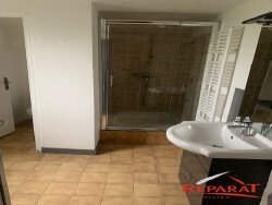 VOUTEZAC, à la sortie d'OBJAT, Appt F4 de plain pied 76 m² avec parking et cour non fermée, comprenant, cuisine avec hotte ouverte sur séjour (36 m²), 2 chambres avec placard, 1 chambre, salle d'eau, WC.