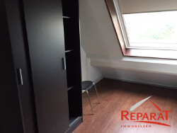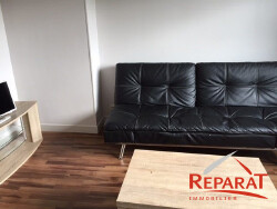 EN RESIDENCE, dans le centre ville d'OBJAT, Appartement de type F2 meublé avec parking, comprenant une entrée avec placard, une cuisine aménagée ouverte sur séjour, une chambre avec placard, salle d'eau, un WC.
