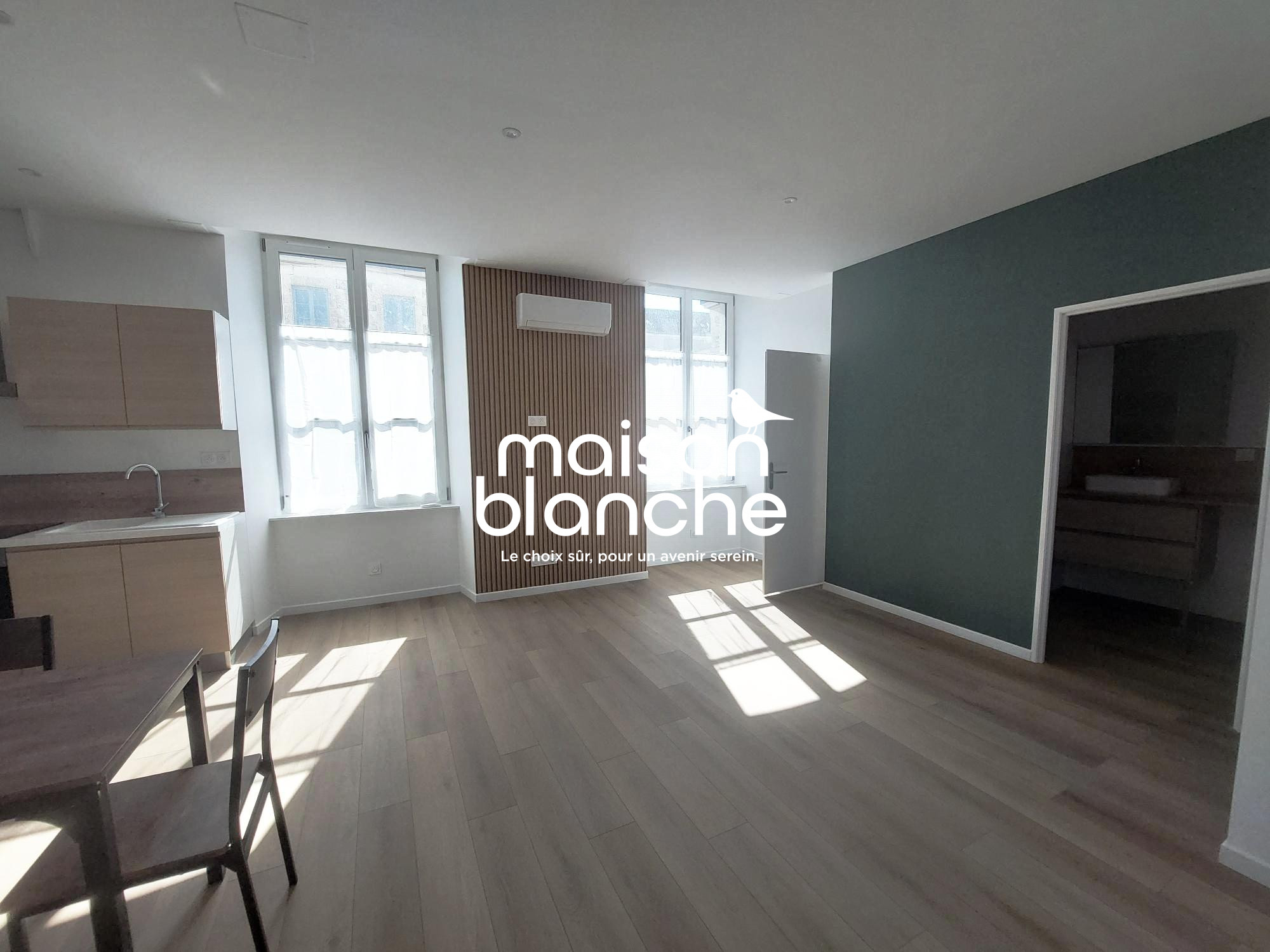 Appartement T3 avec balcon proche de tous commerces comprenant : une cuisine aménagée et équipée (hotte, plaque, four), un séjour, 2 chambres dont une avec placard, une salle de bain, un WC. Une buanderie et une cave viennent compléter ce bien.