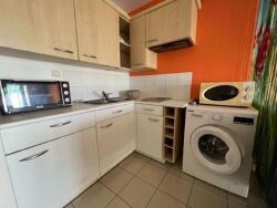 Il comporte une chambre climatisée et une cuisine ouverte entièrement équipée avec mini four, plaques de cuisson, micro-ondes, réfrigérateur et lave-linge.