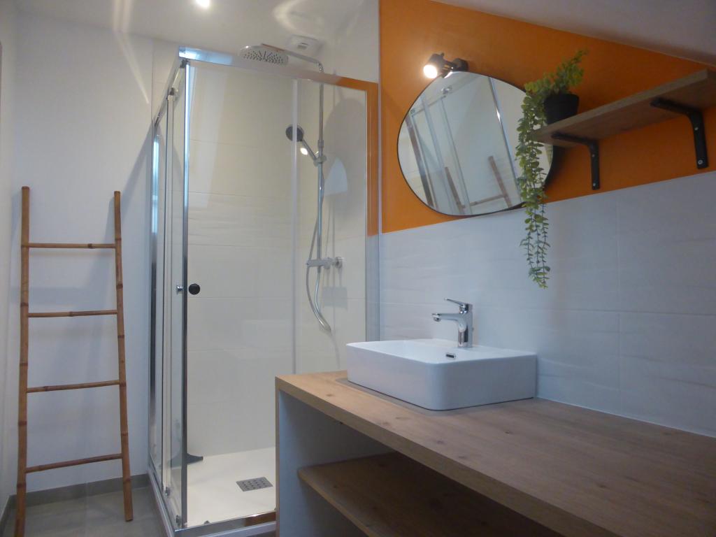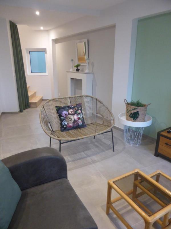 A louer belle maison rénovée avec goût dans un quartier calme d'Hennebont. Ce bien d'une superficie de 87.60 m2 vous propose : RDC : chambre, bureau, buanderie, salle de bains avec wc. 1er étage : entrée, séjour/salon avec cuisine ouverte aménagée et équipée, cellier, wc. 2ème étage : chambre, salle d'eau.