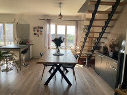A louer belle maison rénovée avec goût dans un quartier calme d'Hennebont. Ce bien d'une superficie de 87.60 m2 vous propose : RDC : chambre, bureau, buanderie, salle de bains avec wc. 1er étage : entrée, séjour/salon avec cuisine ouverte aménagée et équipée, cellier, wc. 2ème étage : chambre, salle d'eau.