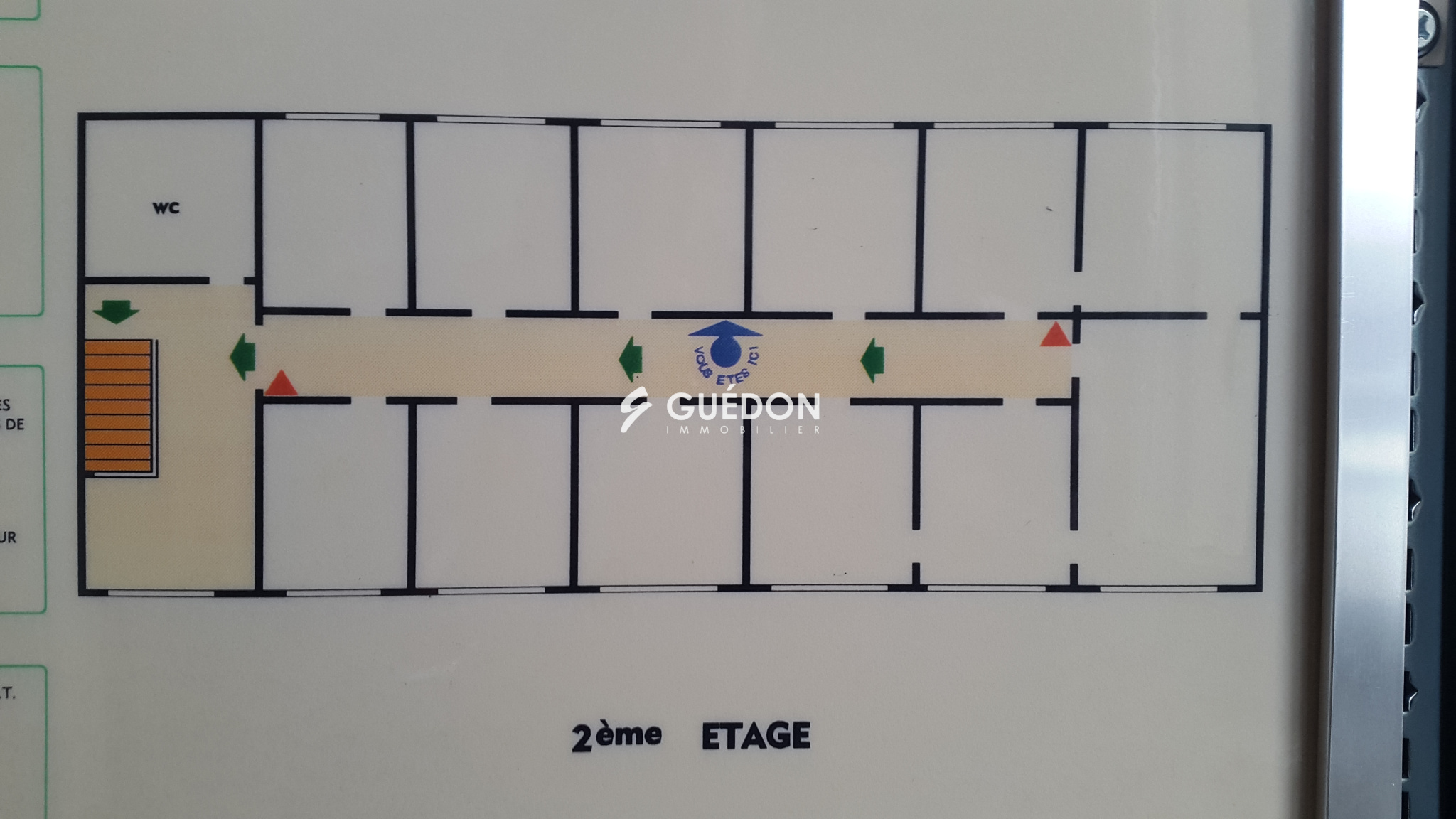 Entrée indépendante au rez-de-chaussée. Étage 1 (557,80 m²) : Une salle de conférences, deux salles de réunion, une salle d'archives, 10 bureaux, des locaux techniques et des sanitaires. Étage 2 (264,40 m²) : 7 bureaux et des sanitaires. Distribué par une cage d'escalier et un ascenseur.
