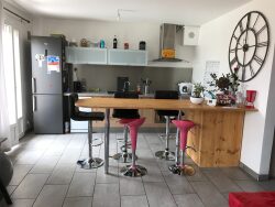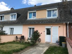 Entrée, wc, cellier, cuisine aménagée et équipée ouverte sur séjour salon. A l'étage : 3 chambres, salle d'eau avec wc. petit jardin clos, terrasse. le loyer est de 830 euros et 27 euros pour les ordures ménagères chauffage au gaz de ville, eau et edf et gaz individuelles