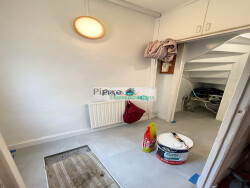 Maison de ville comprenant une entrée, un séjour salon, une cuisine aménagée, deux chambres et 1 bureau ou dressing. Chauffage gaz de ville et électrique. Cour bétonnée et cave.
