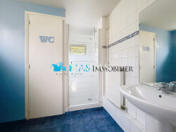 Au rez-de-chaussée, la maison se compose d'un séjour/salon, d'une cuisine, d'une salle de douche avec WC, ainsi que d'une pièce dédiée au dressing, avec la possibilité d'y aménager une chambre supplémentaire selon vos besoins. À l'étage, un palier dessert une chambre.