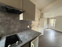 A louer Saint Affrique, centre-ville, Place de la Liberté, appartement de type 2 équipé en 2eme étage. 26 m2 habitables, séjour avec cuisine équipée ouverte (plaque électrique, hotte, frigidaire top), chambre avec placard, salle d'eau avec w-c. hubert-peyrottes-immobilier.fr 05 65 99 19 19