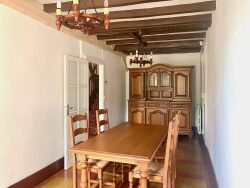 Maison en centre du Houga, proches des commodités, dans une rue au calme. Elle comprend au rez-de-chaussée : - une cuisine toute équipée et assez grande pour y prendre les repas, plus une seconde, donnant sur la véranda, - un coin salon ainsi qu'une salle à manger, - une salle d'eau, ainsi qu'un WC séparé avec coin douche, - un garage avec buanderie, et à l'étage : - un coin bureau sur le palier, - deux chambres dont une avec placard, - une pièce d'eau (lavabo + wc) avec un petit balcon.