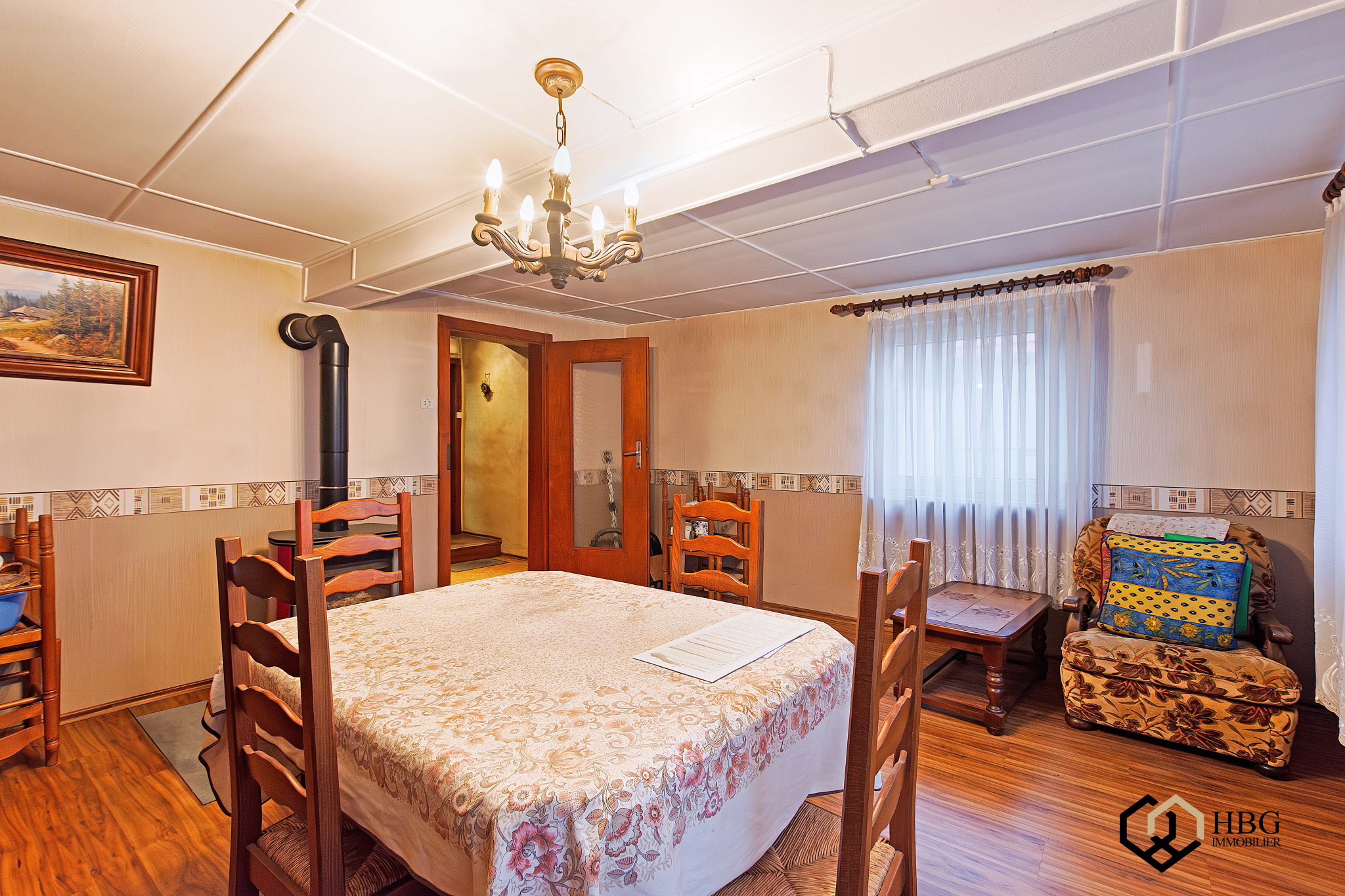 La maison dispose d'un sous-sol avec une cave comprenant la chaufferie (chaudière à granulés récemment installée)