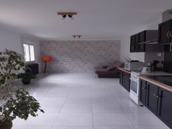 En centre bourg de TREVE, à seulement 5 minutes de LOUDEAC, maison entièrement rénovée d'environ 74 m², mitoyenne d'un côté et comprenant : entrée sur la pièce de vie avec cuisine aménagée ouverte sur le séjour, une chambre avec placard, salle d'eau et WC. A l'étage : grande mezzanine, une chambre, salle de bain et WC. Un grand sous-sol avec garage et chaufferie. Un terrain de 600 m². Chauffage électrique. Libre mi mai 2026. Loyer : 580 . Charges : 60 (TOM et entretien espace vert). Dépôt de garantie : 580 . Honoraires agence : 348 . DPE D