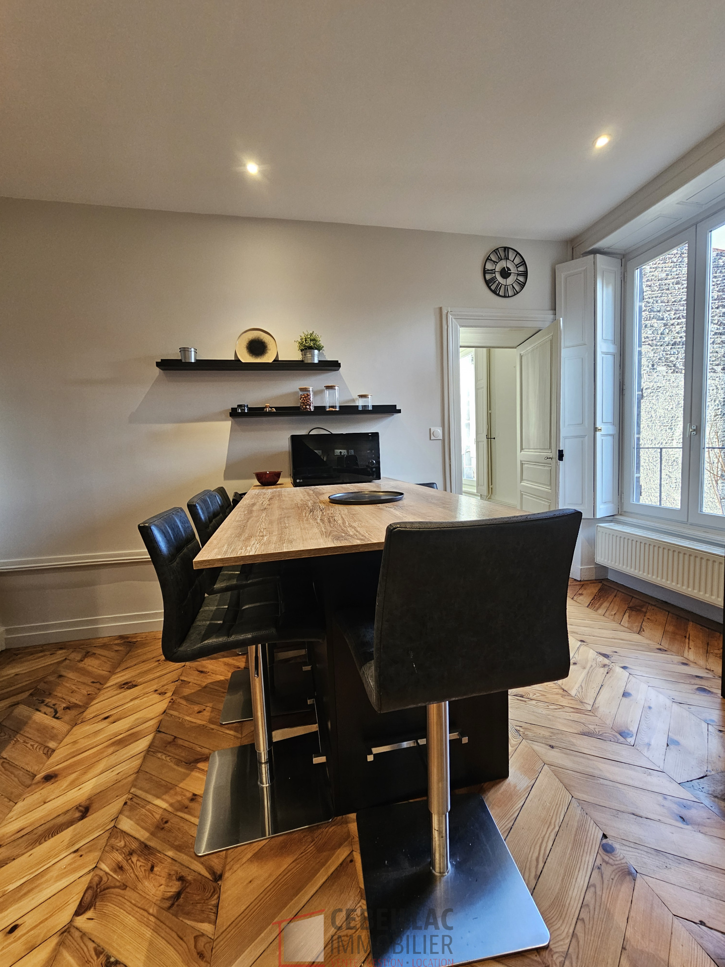 Au coeur de Clermont-Ferrand, cet appartement d'exception de plus de 120 m2 allie avec élégance le charme de l'ancien et le confort de prestations contemporaines haut de gamme. Entièrement rénové avec des matériaux nobles, chaque espace a été pensé avec raffinement. Le mobilier sur mesure, réalisé par des artisans locaux, optimise les volumes et apporte une touche unique à cet intérieur d'exception. Dès l'entrée, un espace bureau aménagé. Le vaste salon/séjour, baigné de lumière grâce à de grandes ouvertures, s'ouvre sur un balcon et une cuisine entièrement aménagée et équipée Un dégagement mène à un espace buanderie parfaitement intégré. L'appartement comprend 4 chambres, dont : Deux chambres avec salle d'eau communicante, Une chambre avec sa propre salle de bains et WC, Et une spacieuse suite parentale avec salle d'eau, WC et accès à une loggia privée Un WC invité complète l'ensemble. La résidence est équipée d'un ascenseur, et l'appartement bénéficie également d'une cave, d'un garage, et d'un grand local vélo, de véritables atouts en centre-ville. Un bien rare, alliant modernité, élégance et emplacement d'exception.