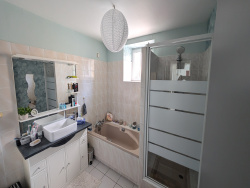 Des espaces bien pensés pour toute la famille Au rez-de-chaussée, une vaste entrée lumineuse vous accueille et dessert un salon-séjour chaleureux, équipé d'un poêle à bois récent (09/2020 8,1 kW). Une cuisine indépendante, deux chambres dont une actuellement aménagée pour l'exercice d'une profession libérale dans la partie ancienne de la maison, une salle de bains et un WC complètent ce niveau. À l'étage, une mezzanine baignée de lumière distribue trois chambres dont deux avec placards et balcons privatifs, une salle d'eau, un WC séparé ainsi qu'un grand grenier aménageable, offrant de belles possibilités supplémentaires. Le sous-sol complet accueille un grand garage, une buanderie et de vastes espaces de rangement, offrant à la maison confort et praticité au quotidien.