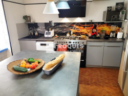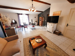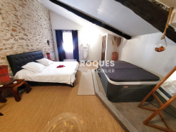 Faugeres (34600), maison de caractère, de 200 m2 habitables, entierement rénovée avec goùt. La maison possède 3 grandes chambres, elle est constituée de deux corps de batiments, surélevée de 2 étages avec une cour de type 'PATIO'. Elle comprend: Rez de chaussée: Cuisine équipée 24 m2, WC 2 m2, salon 31 m2, cour de 74 m2, buanderie 5 m2, cuisine d'été 6 m2, garage 41 m2. 1er etage: Bureau-chambre 20 m2, salon -salle à manger 40 m2, WC 2 m2, Grande chambre parentale avec jacuzzi 40 m2, salle d'eau attenante 6) m2, piece avec sauna 6 m2, terrasse extérieure 8 m2. 2eme étage: chambre parentale avec WC et salle d'eau de 26 m2. PRESTATIONS: La maison est en trés bon état général. Historique: Faugères est une ancienne place forte protestante, les remparts entourants la ville sont du 12ème siecle.