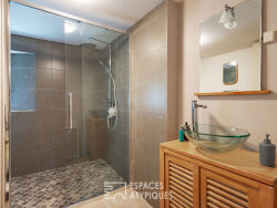Le rez-de-chaussée, actuellement loué, comprend un séjour, une cuisine aménagée et équipée, une chambre et une salle d'eau avec WC. Le premier étage, indépendant, dispose d'un salon lumineux avec poêle à bois, d'une cuisine moderne entièrement équipée, de deux chambres, d'une salle d'eau, d'un WC séparé et de rangements. Deux chambres supplémentaires se trouvent au dernier niveau. En sous-sol, caves.