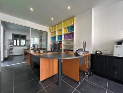 Le local est également équipé d'une cuisine moderne et d'une salle de pause pour le confort de vos collaborateurs, ainsi que des WC. L'accès au garage se fait par l'intérieur, offrant ainsi un espace de rangement supplémentaire idéal pour le stockage ou les archives.