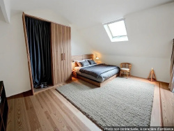À l'étage : une chambre spacieuse et un bureau pouvant servir de petite chambre d'enfant ou d'espace de télétravail.