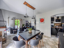 Le bien s'organise sur trois niveaux : - Pour le premier espace au rez-de-chaussée, vous trouverez une grande pièce de vie très lumineuse grâce aux trois portes fenêtres donnant sur sa grande terrasse ombragée et pour vos soirées conviviales une cheminée à insert vous assurera une ambiance chaleureuse. Une cuisine entièrement équipée avec un ilot central vous offre de beaux espaces de rangement et un accès à la deuxième terrasse couverte de 30 m2.