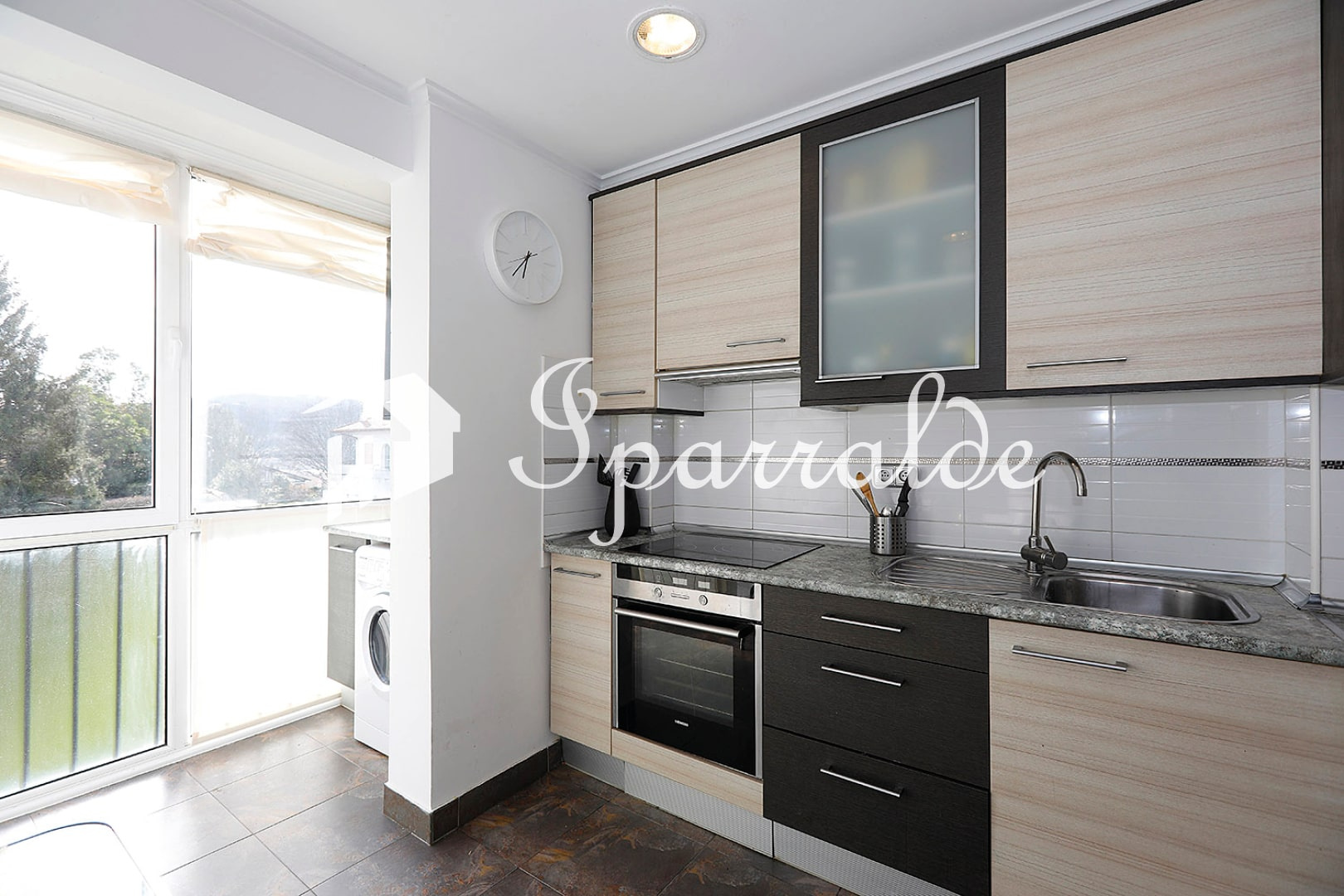 Une cuisine semi-ouverte, également baignée de lumière,