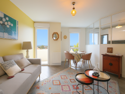 Un séjour lumineux ouvrant sur une spacieuse terrasse / balcon avec vue dégagée,