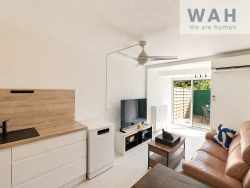 Climatisation Cuisine neuve équipée Coin nuit bien distinct Store électrique Carrelage moderne 60x60 Terrasse en rez-de-jardin sécurisée Place de parking privative sécurisée Accès piéton vers la plage et les commerces Emplacement recherché à proximité du Couchant