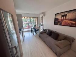 L'appartement comprend un séjour avec cuisine intégrée, un dégagement, un WC, une chambre, un coin cabine, une salle de bains, une terrasse, ainsi qu'une place de parking. Ce bien offre un agencement fonctionnel et lumineux, au sein d'une résidence bien entretenue.