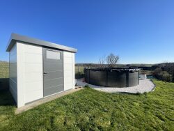 Charmante maison d'env. 138 m², avec une Mezzanine faisant office de bureau comprenant, une vaste entrée avec 2 grands placards, une belle pièce de vie lumineuse avec cuisine équipée et aménagée, un coin buandeire, 3 chambres et un bureau en mezzanine, une salle de bains, WC. - Un grand garage d'env. 26 m². - Une piscine hors-sol. - Deux abris de jardin. - Panneaux photovoltaïques.