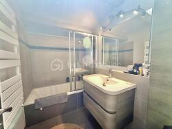 Salle de bain contemporaine, pratique et bien agencée.
