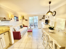 Charmante Bastide de 45m2, qui est composée d'une entrée avec rangement, une kitchenette équipée ouverte sur le séjour donnant sur une terrasse, une salle d'eau avec wc. A l'étage : 2 chambres avec rangements, une salle de bains avec wc. Elle dispose d'un accès à la piscine sécurisée dans la résidence, idéale pour les chaudes journées d'été.