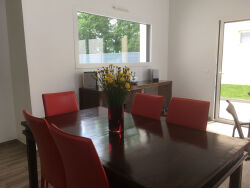 BAISSE DE PRIX A vendre à Locminé, idéalement située en impasse dans un lotissement proche du centre-ville, rare sur le secteur, une maison de 2021, de plain-pied, aux normes RT 2012, PMR et sous garantie décennale. Passé l'entrée avec son placard intégré, cette maison cubique est articulée autour d'une belle pièce de vie lumineuse et très haute de plafond, donnant sur une terrasse, comprenant un espace salon/séjour et une cuisine équipée d'appareils électro-ménagers haut de gamme (plaque de cuisson à induction, hotte encastrée, four, micro-ondes, lave-vaisselle, réfrigérateur, congélateur, lave-linge). D'un côté, l'espace parental : grande chambre, dressing aménagé, salle d'eau avec double vasque et sèche serviettes, toilettes séparées avec lave-mains. De l'autre côté, l'espace enfants desservi par un dégagement se compose de deux belles chambres et d'un bureau pouvant servir de chambre d'appoint, de toilettes séparées et d'une salle de bains avec double vasque et sèche serviettes. Garage attenant à la maison avec porte motorisée. Deux places de stationnement privatives. L'ensemble sur un terrain clos de 585m² . Ses atouts : - sous garantie décennale jusqu'en 2031. - maison raccordée à la fibre. - climatisation réversible dans toutes les pièces - chauffe-eau thermodynamique - construite sur vide sanitaire (3.64 % honoraires TTC à la charge de l'acquéreur.)