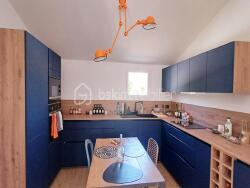 Cette charmante maison de 5 pièces abrite des espaces de vie généreux et une belle terrasse pour des moments conviviaux en extérieur.