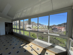 Sur les hauteurs de Castanat le haut, en position dominante, maison mitoyenne par un côté de 130m2 habitables avec dépendances, garages sur un terrain d'environ 1 Hectare comprenant: Rez-de-chaussée: Garage plus cave pour une surface totale de 50m2. 1er étage: Cuisine, Séjour / Salon, une chambre, cellier, Salle de bain, Toilette, véranda. 2ème étage: Deux chambres, une pièce et grenier. ANNEXES: Garage indépendant de 40m2, dépendance de 30m2. PRESTATIONS: Cheminée insert, menuiseries PVC double vitrage, des travaux sont à prévoir: Mise au norme électrique, isolation, moyen de chauffage, rafraîchissement. Situation géographique idylique avec une superbe vue dégagée A voir absolument!
