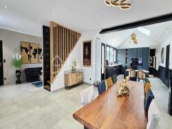 Seulement chez Mathilde OBRY ! Venez découvrir à moins de 15 minutes du sud d'Amiens, cette superbe propriété coup de coeur entièrement rénovée avec goût l'an dernier proposant de magnifiques volumes dont une pièce de vie lumineuse de plus de 105 m² composée d'une cuisine équipée de marque Cuisine Plus (dessinée par Virginie) ouverte sur un séjour-salle à manger avec poêle à granulés Piazzetta, salon donnant sur le jardin et la piscine chauffée par pompe à chaleur. On retrouve au rez-de-chaussée une arrière cuisine de 15 m², une chambre parentale de 25 m² suivie de son dressing aménagé de 19 m², une grande salle de bains de 16 m² avec double vasques, baignoire balnéo et douche italienne, un toilette suspendu séparé avec lave-mains et fenêtre, une seconde chambre de 13 m². Le premier étage entièrement sur parquet massif offre 2 chambres de 19 et 16 m², une salle d'eau avec double vasques ainsi qu'un WC suspendu indépendant. Au dernier étage, on retrouve un palier-salle de jeux ainsi qu'une cinquième chambre traversante avec dressing comptabilisant 30 m² habitables (40 m² au sol). Maison connectée de A à Z.