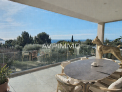 A vendre, villa d'Architecte avec Vue Mer et piscine à La Ciotat Rénovation d'Exception AVP IMMO Nichée sur les hauteurs de La Ciotat, cette villa d'architecte de 345 m2habitable + annexes. Cette villa contemporaine conjugue l'élégance et un design moderne raffiné. À quelques minutes des plages et du centre-ville, elle offre une vue panoramique avec vue mer, dans un cadre intime et préservé. Une maison contemporaine pensée pour le confort et le bien-être, d'une superficie totale de 402m2 dont 345m2 habitable et entiérement rénovée, pas de travaux Deux logements communiquant, penthouse de 220m2 avec une terrasse de 70m2 avec vue mer, séjour/cuisine us équipée 100m2, big master (dressing, salle de bain, wc) avec terrasse privative et vue mer, 2 chambres , un dressing, une salle d'eau, un bureau, une buanderie, wc d'accueil Au rez de chaussée, appartement communiquant d'une surperficie de 120m2, séjour/cuisine us de 63m2, une suite avec salle d'eau, une chambre, une salle d'eau, une buanderie et un wc d'accueil Un garage de 3 voitures de 46m2 + un parking couvert de 4 voitures + atelier de 9m2 Espaces extérieurs et équipements :