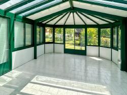 Une véranda baignée de lumière, idéale comme coin lecture ou salle à manger d'hiver