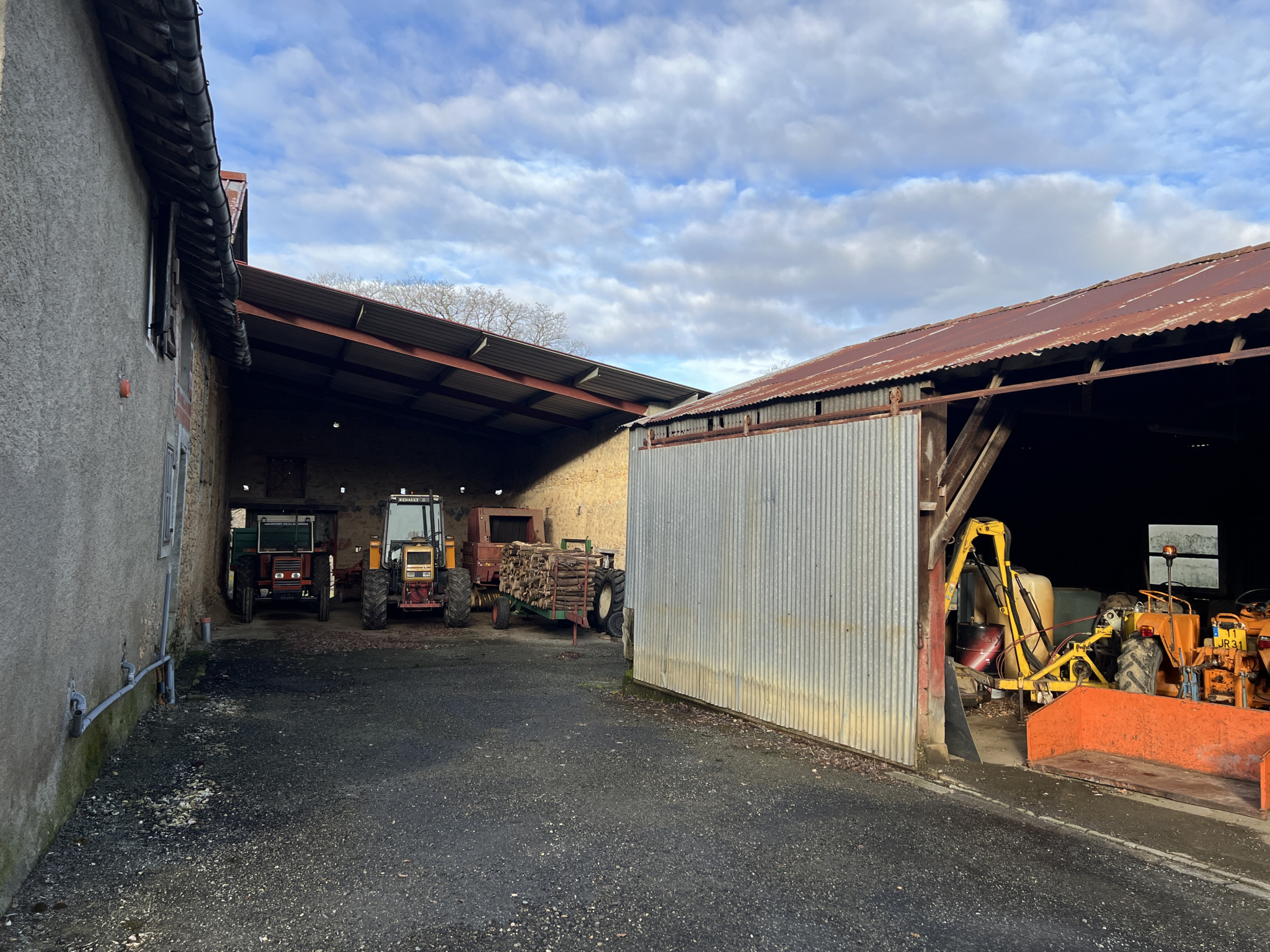 En passant les grandes portes battantes en bois, rénovées il y a peu, vous accédez à l'entrée couverte et carrelée. Elle abrite les entrées privées de plusieurs locaux et le portail en fer donnant accès au jardin authentique et la bâtisse principale.
