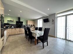 - Rez-de-chaussée : Spacieuse pièce de vie de 76 m² avec cuisine équipée récente (46 m²), salle à manger et salon lumineux. Buanderie de 18 m², 2 grandes chambres (17 m² chacune). Salle d'eau moderne avec WC