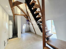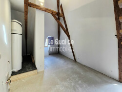 - L'entrée ouvre directement sur une vaste pièce de vie traversante, baignée de lumière naturelle grâce à ses nombreuses ouvertures et à son exposition Sud-Est. - Un espace buanderie avec le chauffe-eau déjà installé. - Des WC séparés. - À l'étage, deux grandes chambres mansardées ainsi qu'un espace prévu pour accueillir une salle de bain.